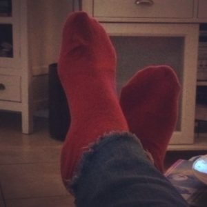 Ik heb mijn rode sokken aan.