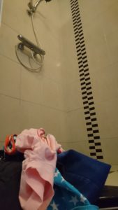 Neem nou die streek dat ze elkaar met kleren en al onder douche hadden gezet. Ik zat op de wc en kon er niet a la minuut van af (tja ook ik moet wel eens 😉  ) en ik hoorde Caithlynn en Milano al giechelen in de gang. Elkaar aanmoedigen om naar boven te gaan en ja hoor… daar gingen de eerste stappen op de trap. Ik de wc deur open en zeggen dat ik dat niet wil hebben. Ze mogen niet alleen naar boven. Boos zeggen dat ze nu naar beneden moeten komen. Nou je raad het vast… nog meer gegiechel en tegen elkaar maar zeggen toe maar ga maar naar boven! En ik voelde mij met de minuut kwader worden. Maar kon even niks beginnen. Ik probeerde al te bedenken wat er kon gebeuren, ja niet zo veel eigenlijk behalve van de trap afvallen. Maar dat hebben wij hen proberen bij te brengen, om rustig op de trap te doen en geen fratsen vlak bij de trap. Maar op vertrouwen dat ze dat goed weten. En met het moment dat ik bijna van de wc afkom hoor ik de kraan aan gaan… NEEEEE!!!! was mijn eerste gedachte. Zodra het kon stormde ik naar boven. 2 giechelende kindjes in de douche hoek, kleddernat. Oh nee he…. dat kon ik nu toch echt niet gebruiken, mijn energie voor vandaag is eigenlijk op. Na ja, dan maar doucen. Allebei apart gezet, boos geworden, gezegd dat dat nooit meer mag! Dat doen papa en mama toch ook niet?! Met kleren en al onder de douche?! Ben je nou helemaal gek geworden!!